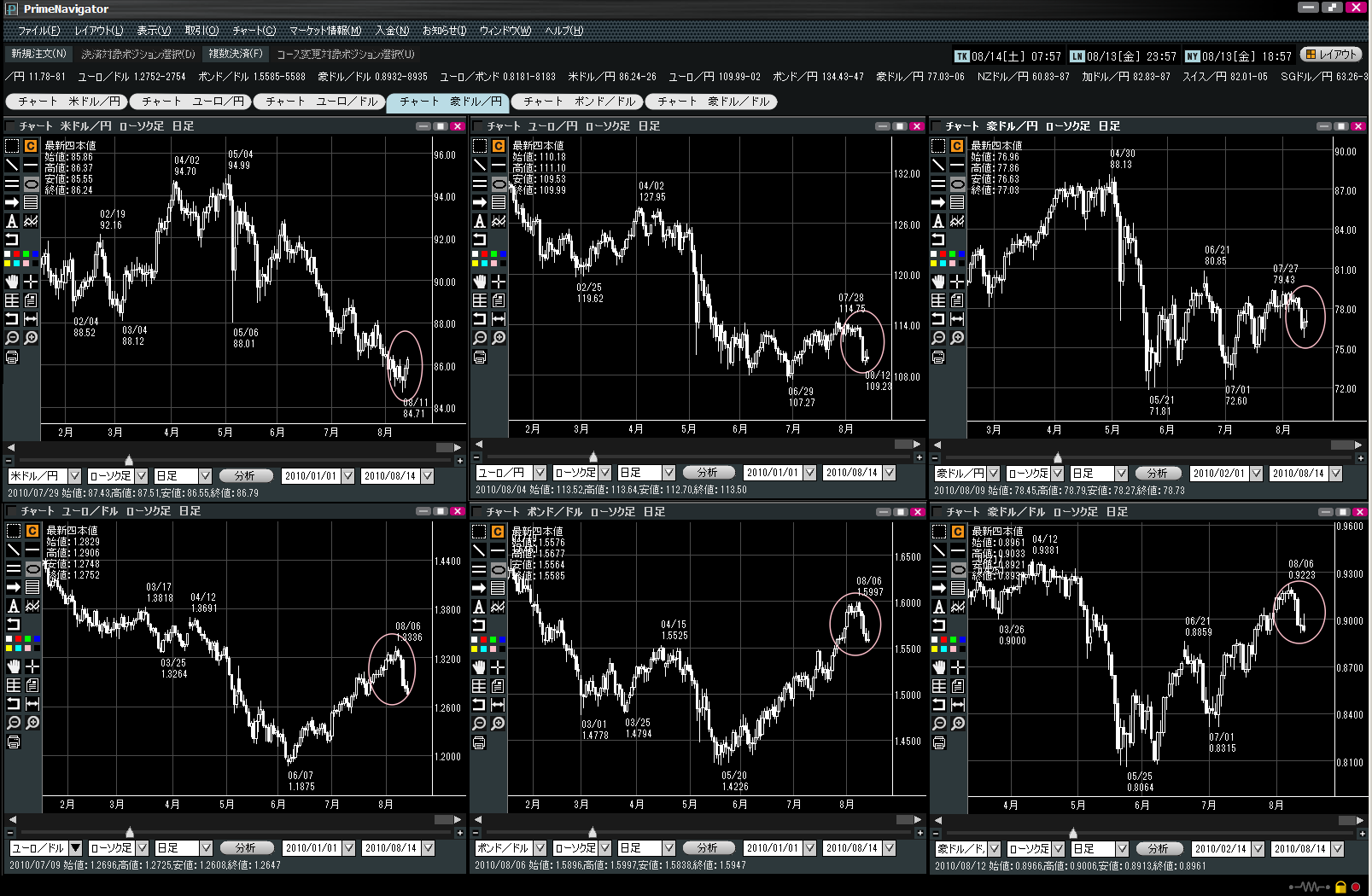 8月は円高のシーズン?ということもあって、やはり下げてきましたね。