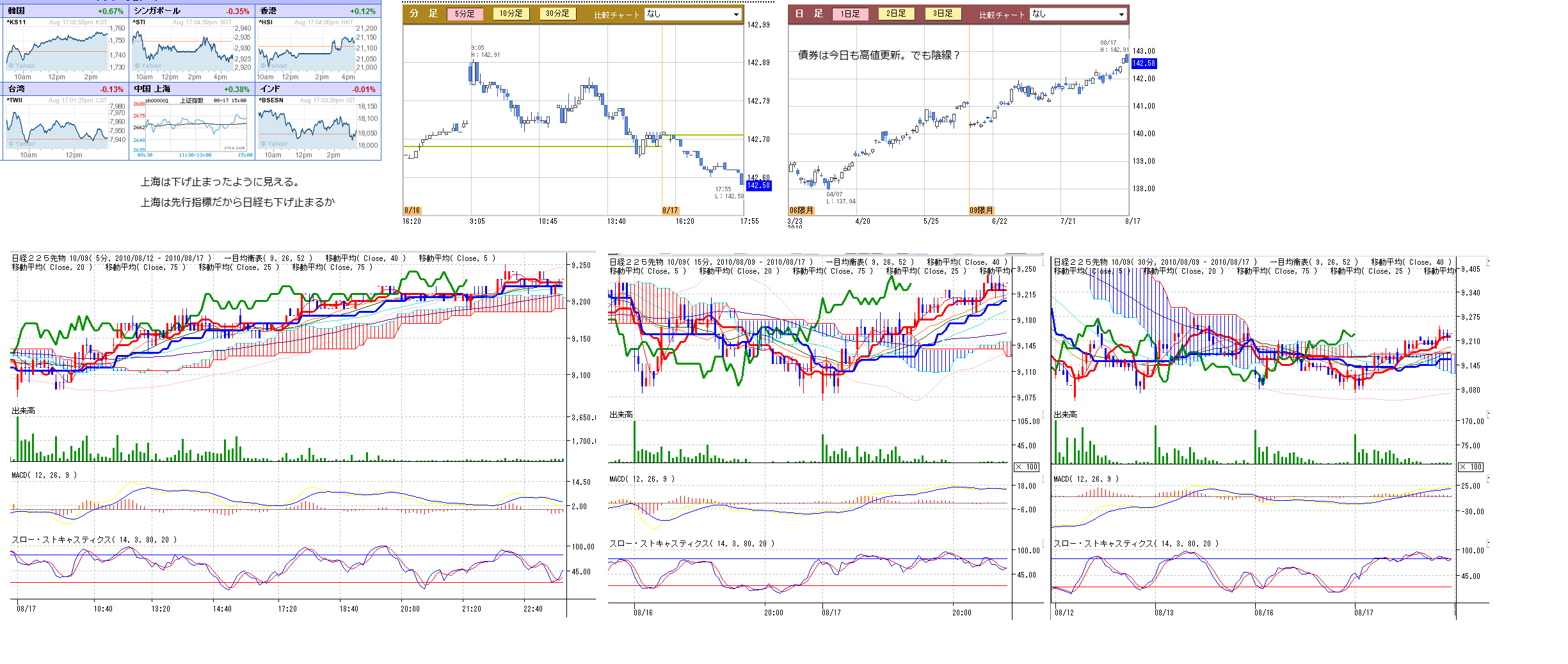 1、分足と債券の記録(夕場終了後にアップします)