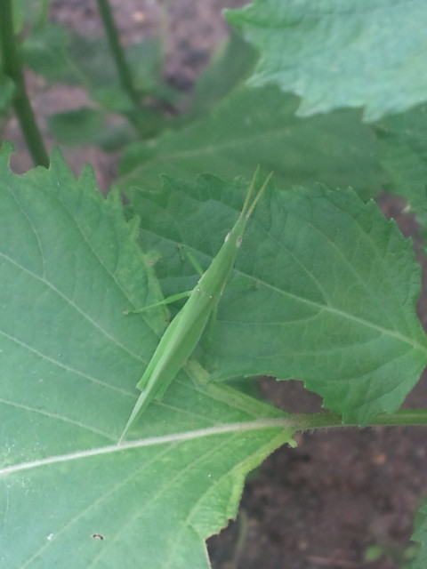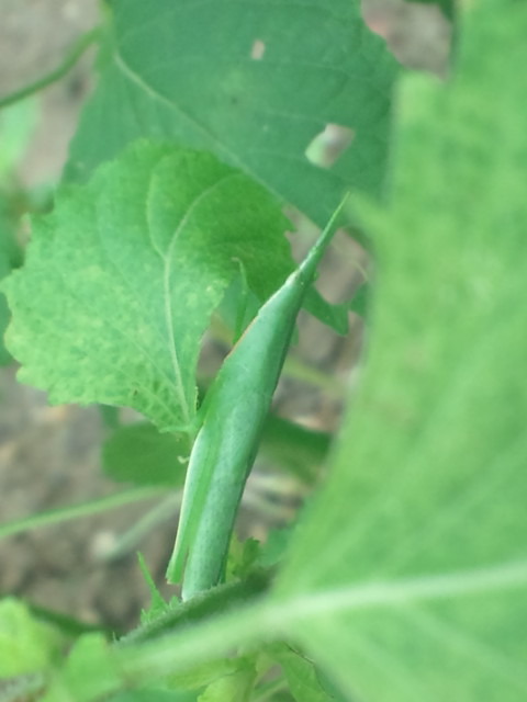 先乗りした嫁さんが手入れしたものの、やはりいましたバッタくん。