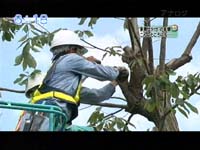 この 街路樹を 実際に 選定して 伐採する、 高所で作業する人 たちは ?