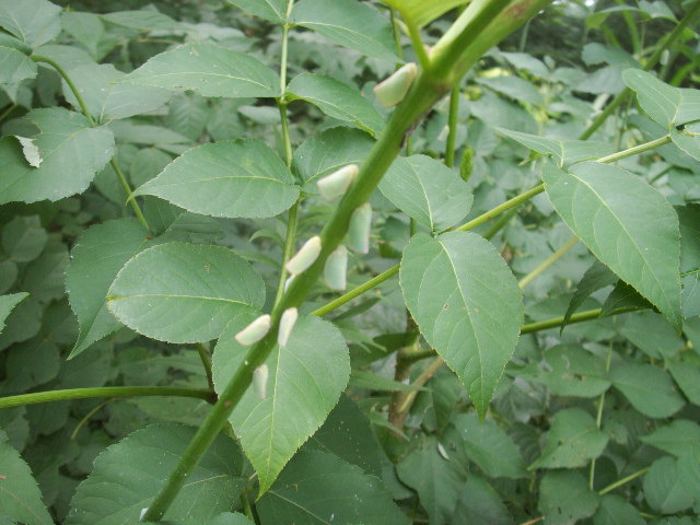 山歩きで見つけたウドの大木ですが、良く見ると、小さな蛾がならんで止まってます