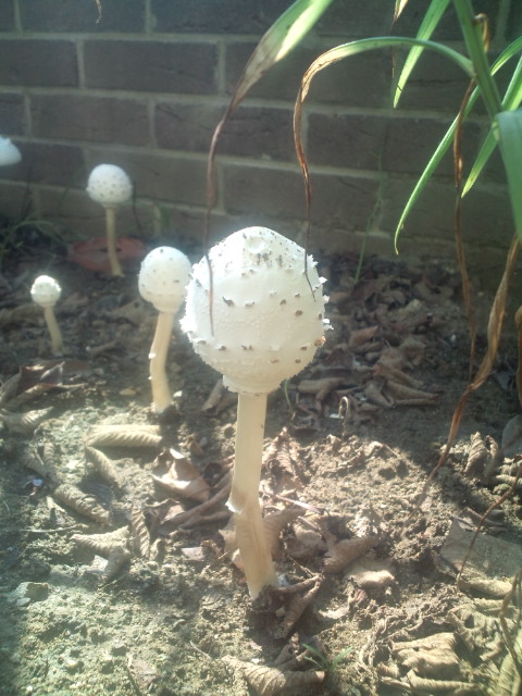 朝起きて庭をふと見ると昨日まではなかったボール状というか、フジテレビ本社ビルにある球体のようなきのこがいくつも生えていました。
