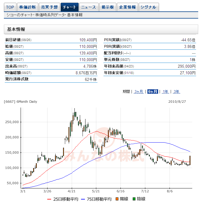 今年の春に急騰して4月23日に295000の高値からの下降波の美しさは、