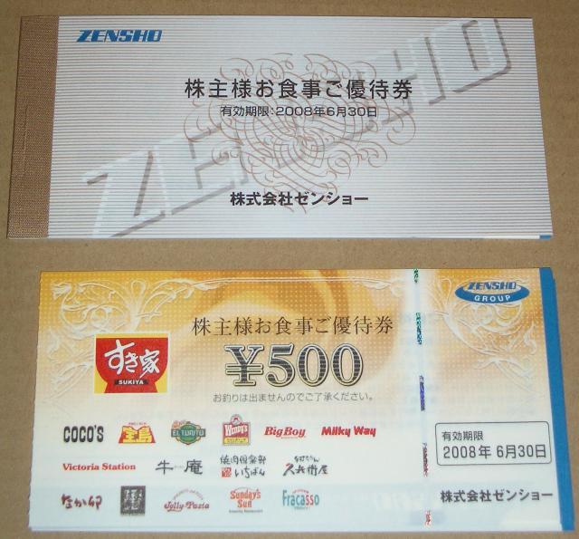 1000株以上 12000円分の食事券 (500円券6枚 4冊)