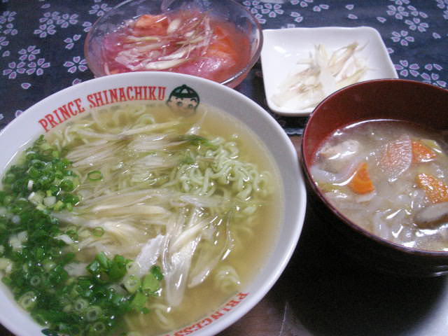 おかずは、夕べのブタ汁の残り物