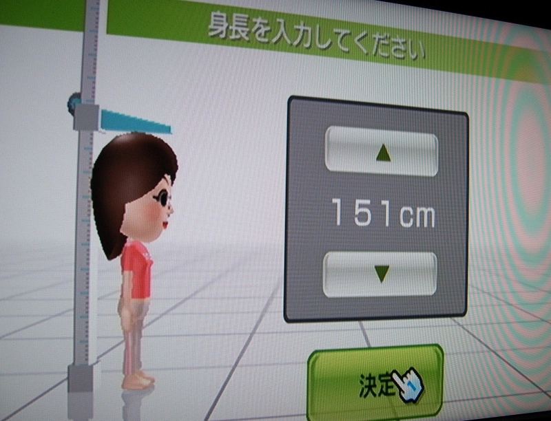 このボード♪身長・生年月日を入れて後は指示にしたがい、ヨガったりスキーのジャンプ疑似体験♪