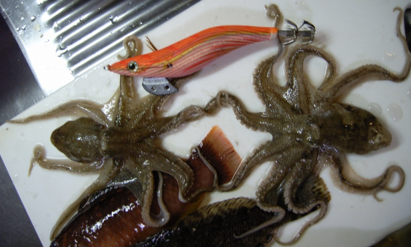 イイダコしゃんは砂地にいることが多く青虫でキスを釣ってるとかかることもあるらしい♪ヌメリをとりサット茹でて、お刺身で食べマスタ♪ウマかったっす♪ハイ