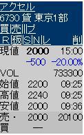 アクセル 6730が大幅下方修正を発表しストップ安、