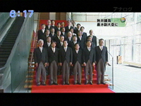 21日午前、総理官邸で記念撮影に臨んだ筒井氏は、 認証式にむかい、政府の会合に出席するなど、慌ただしく