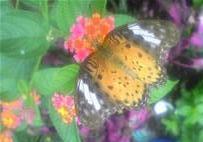 暖かい気候で花も咲き、蝶も舞い降ります。まるで自分のうちの様に動きません。ツマグロヒョウモン、はな、蝶 2010.9.20自宅にて