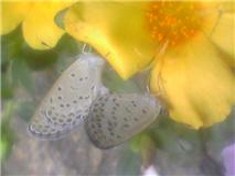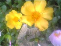 マツバボタンで蝶のランデブーが見られました。これから蛹になって越すのでしょうか?