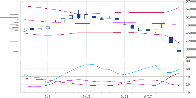 ボリンジャーバンドの下限を突き抜けて、買い戻しの気配が来るかどうか?