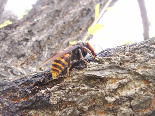 怒ったスズメバチを見たら目線もそらすほうが良いようです