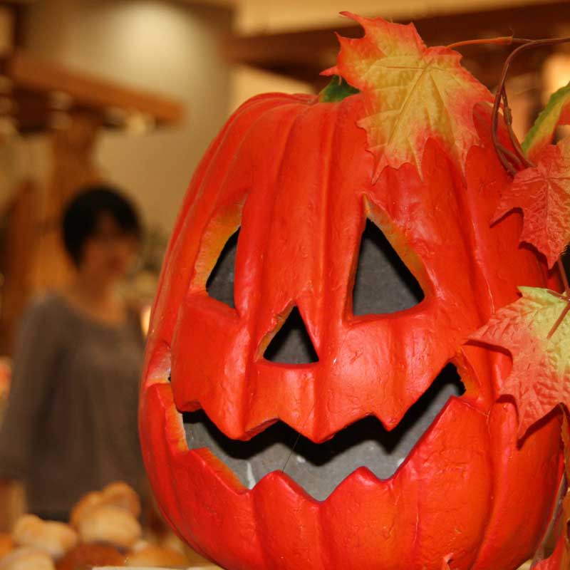 ショッピングセンターの飾り付けがハロウィーンに変わりました。