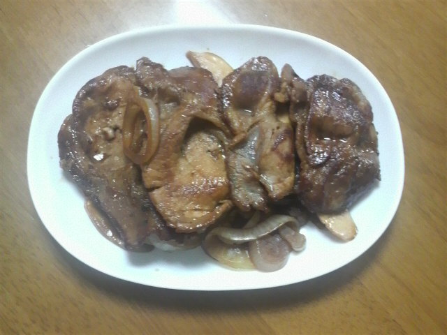 今週の料理は、豚しょうが焼き。色々バージョンはあるも、今回は玉ねぎとエリンギを炒めて合わせたものにしてみました。