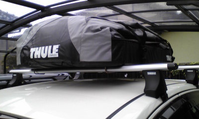 画像は車のルーフキャリアにテントなどを積み込んだものです