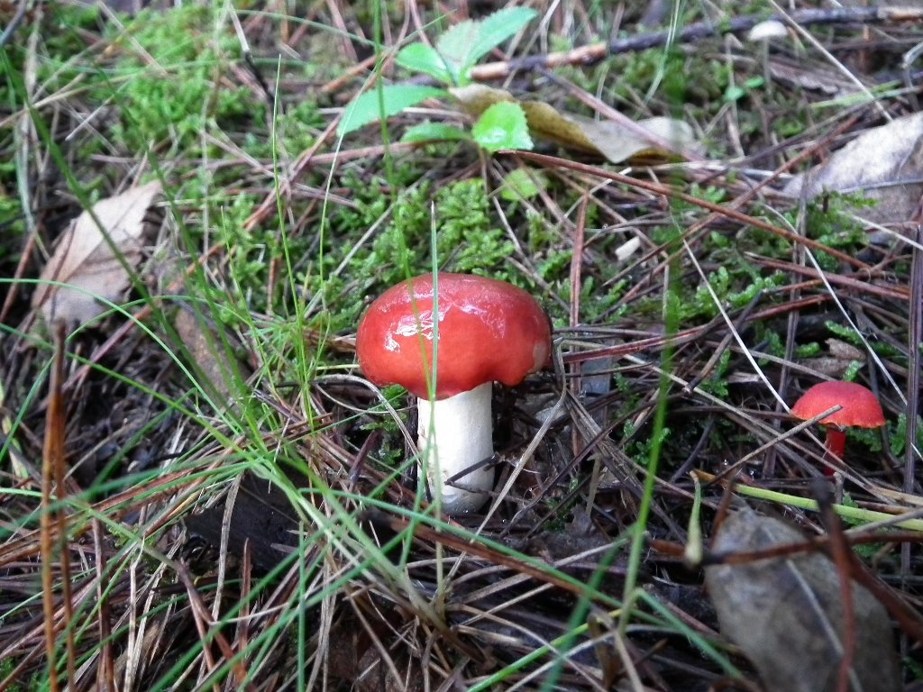 大きくて赤いのはベニタケ、ドクベニタケのようです