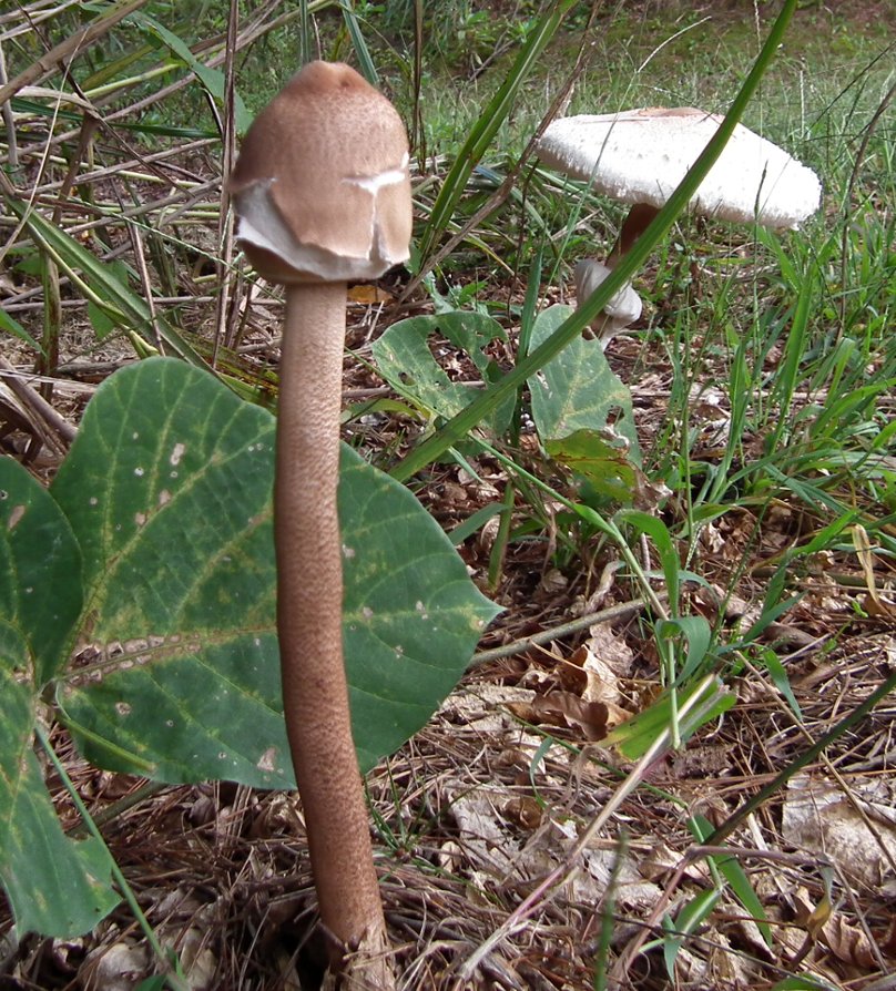 写真2の長いいキノコはハラタケ属で多分毒キノコでしょう