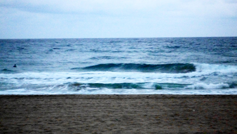 一人気ままに日本海で、朝5時から波のサイズチェックする怪しいおばちゃん。