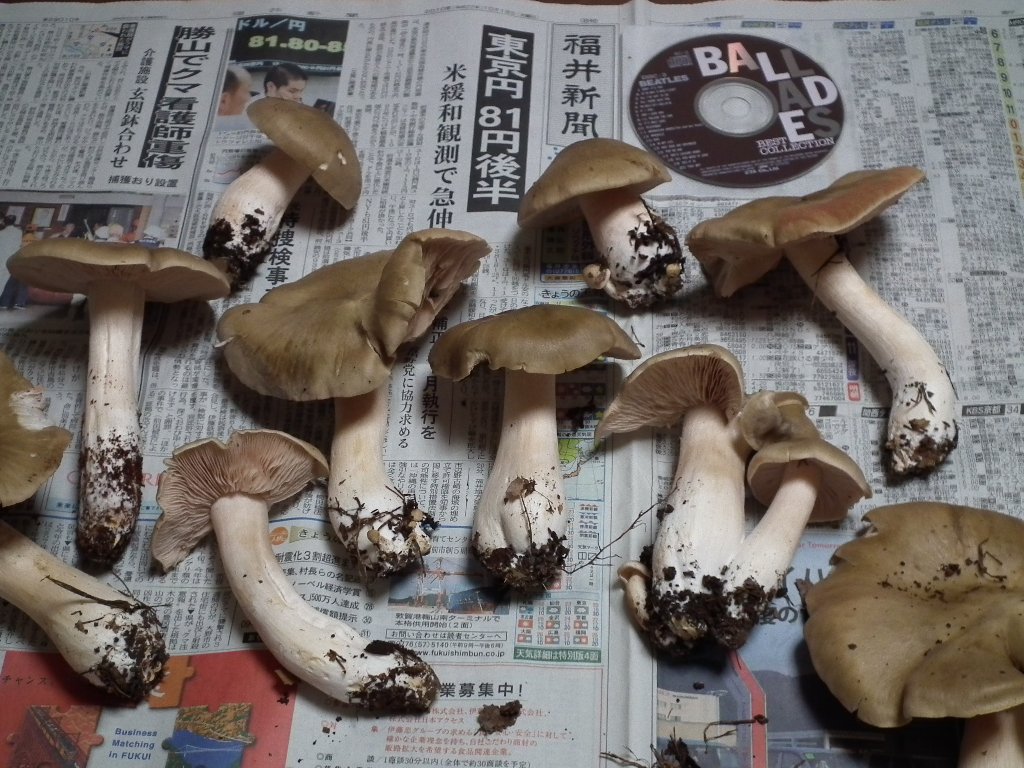 キノコ採りをする人は魚釣りする人の1/20~1/100くらいでしょうか、少ないですねー