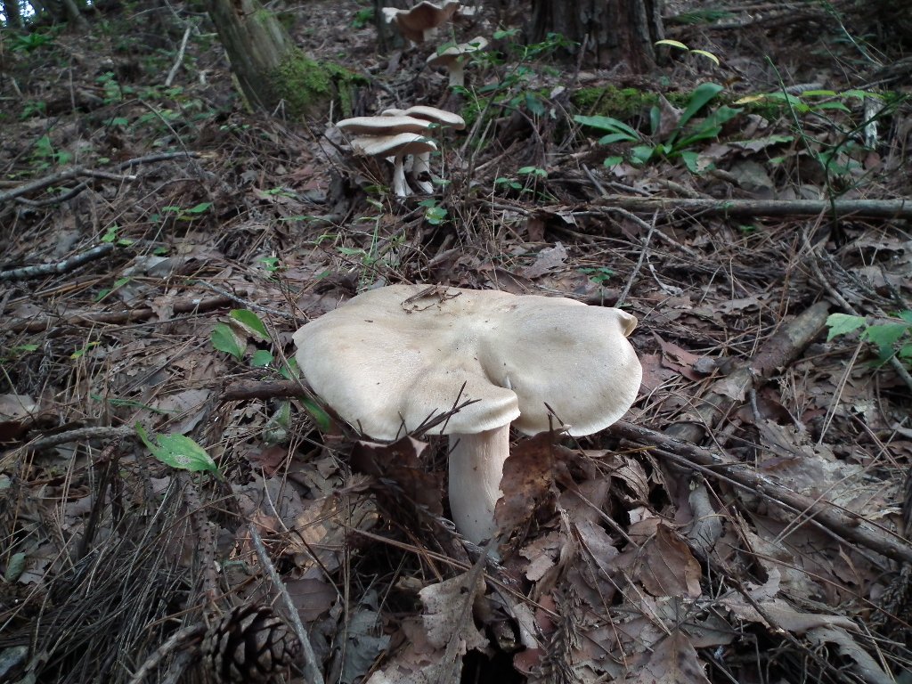 今日は珍しくキノコ採りの人と出会いまして、その爺さんはハツタケを4本持っていて、もうこの辺はさっぱりアカンなあ・・毒キノコばっかりやー・・と言ってましたが、彼が降りて来た山へカメラだけ持って入ったら、この大物がいっぱい出てたのです^^