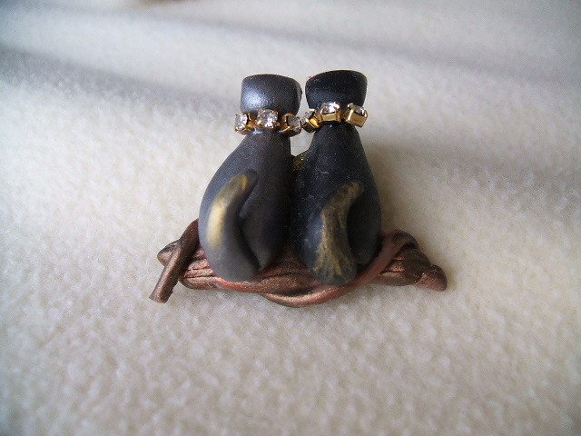 今日の猫ちゃんは、レンタルボックスで購入したこのブローチです。寄り添う感じがとってもキュートでしょ?