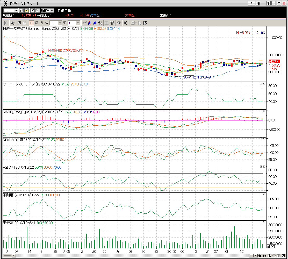 騰落レシオ25:85.54(88.10) RSI14(日足)50近辺(51近辺) サイコロジカル12:42(50)
