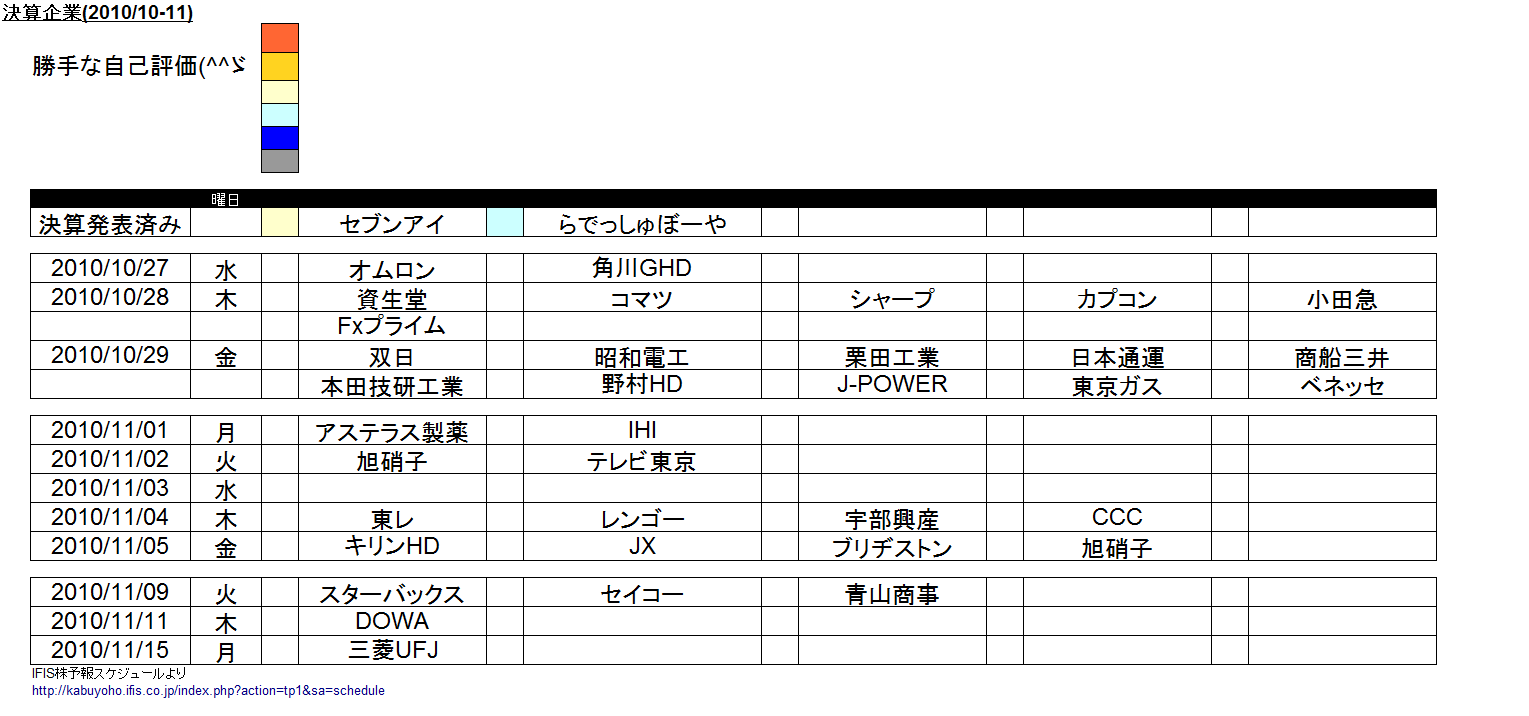 2010/10/26(火曜) 10月末権利付最終売買日