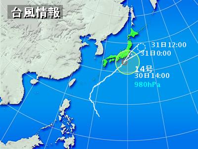 そちらに接近中の台風についてですが,何事もなく通り過ぎるといいですね。