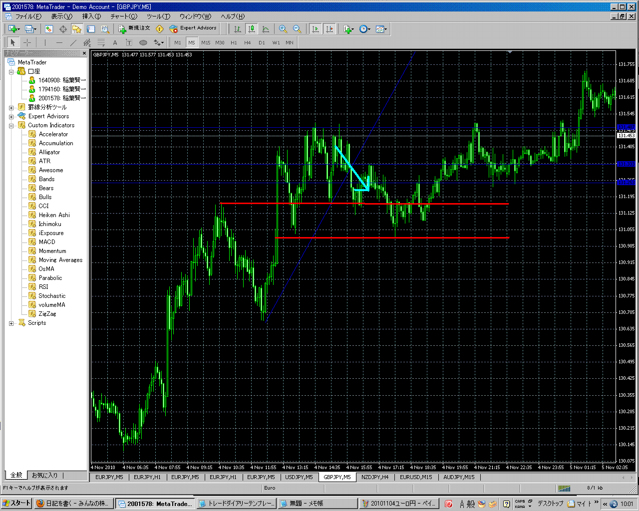 反省点: 方向性はあっていたが、エントリー位置が天井近くであり、リスクが本来大きくなっていた。今回の例で言うと、131.18のラインにひきつけてトレードするほうがリスクが小さくリワードが大きい良いトレード。トレード前にどこのラインまでひきつけるのかということをキチンと図にして、トレードするといいかも。トレードはラインにひきつけるを意識してトレードに望みたい。