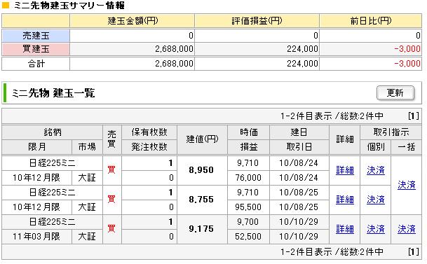 本日の手仕舞い。