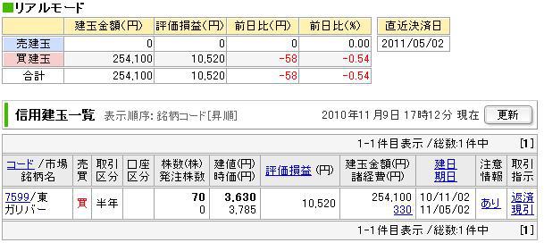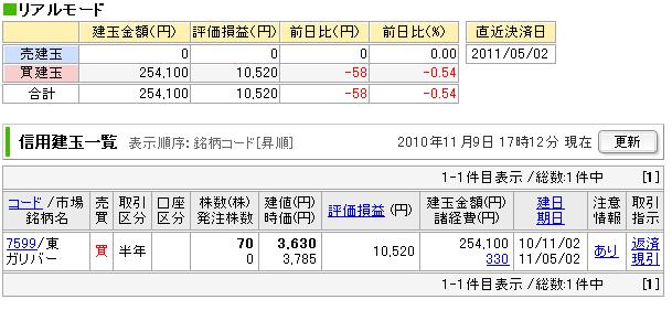 本日の手仕舞い。