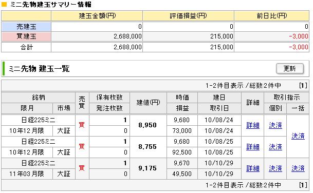 日経225miniは、10500円までいくか、期限切れの直前で一番いいタイミングを狙います。