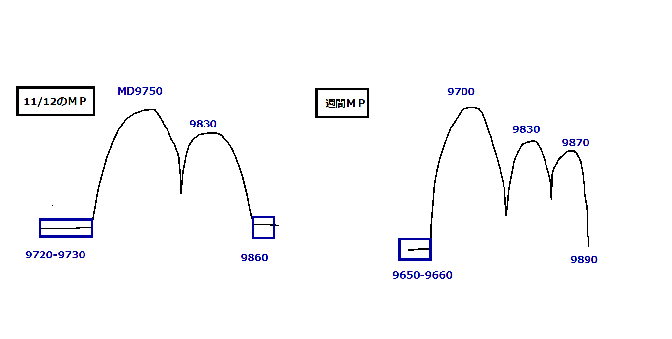 ・9940-9960のレッジをうめれば、再度9700↓への流れになると思いますが、それまでは売りは慎重に。