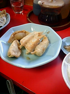 餃子は焼き餃子、揚げ餃子、水餃子があり3種類を2皿づつ頼み半分づつにして食べました。(ライス&ザーサイ付)