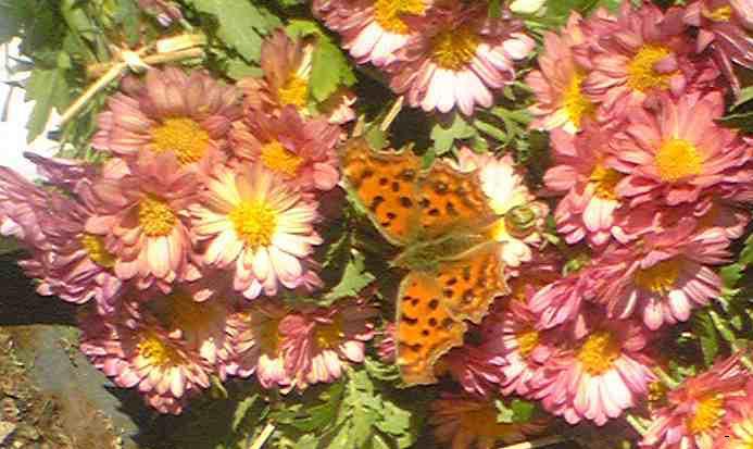 菊の蜜ってなんとなく苦そうなイメージがあるんですが、蝶が来ているということは、やっぱり甘いんでしょうね。