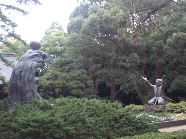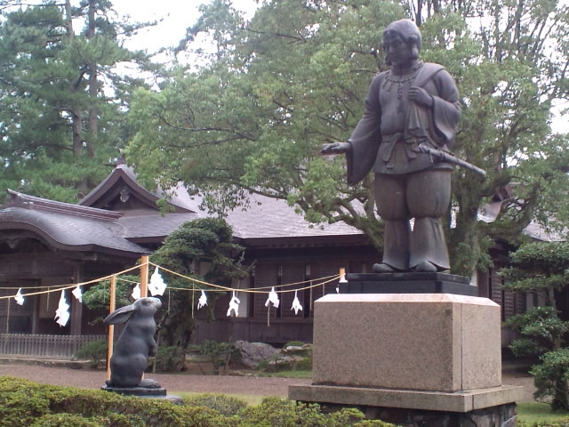 写真は出雲大社の主祭神である大国主命、同じく大国主命と因幡の白うさぎ、木造のドームである出雲ドームです。
