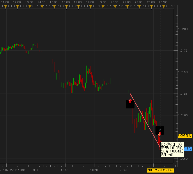 USDCHF - 1.0059L→1.0016S(RRR:-0.97,利益率:-0.94%)