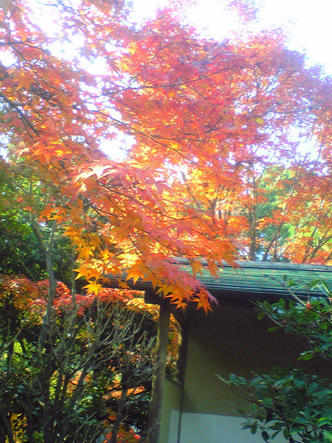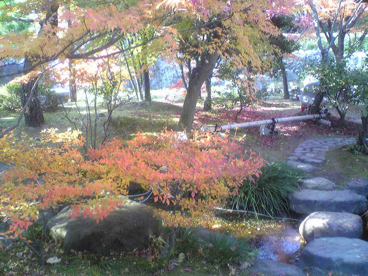 白鳥庭園,清羽亭の雪つりと紅葉と紅葉のじゅうたん 2010年12月04日
