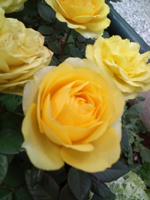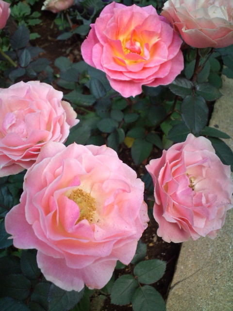 低い背丈のバラで、ピンク、赤、黄色、白と色とりどりでした。