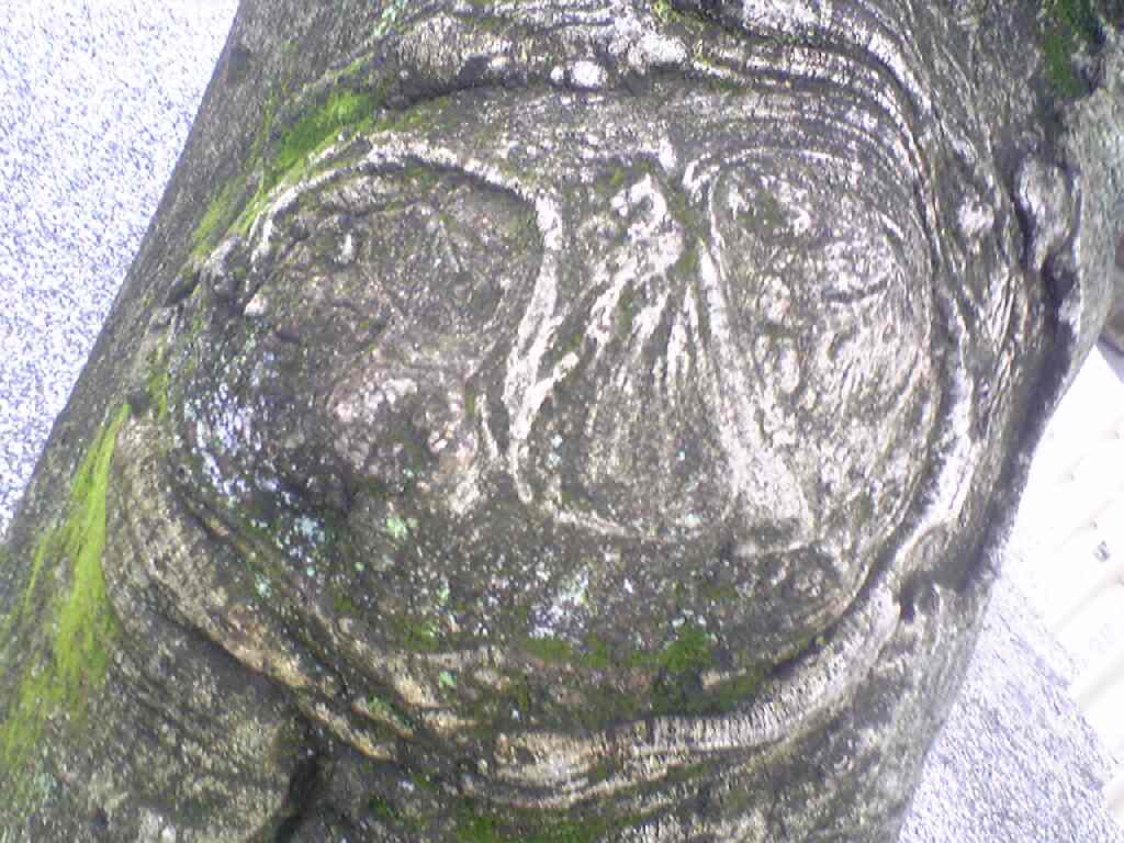 木の中に神様がいるようにも見えます。おばQにも見えます。熱田神宮の本殿の前です。