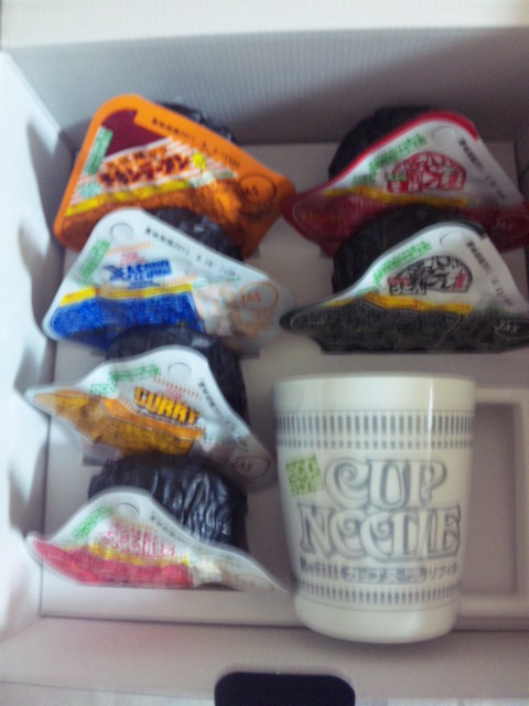 楽しく食べてエコスタイル(ecostyle)と箱には書いてあり、コップと6パックのラーメンとうどんが。