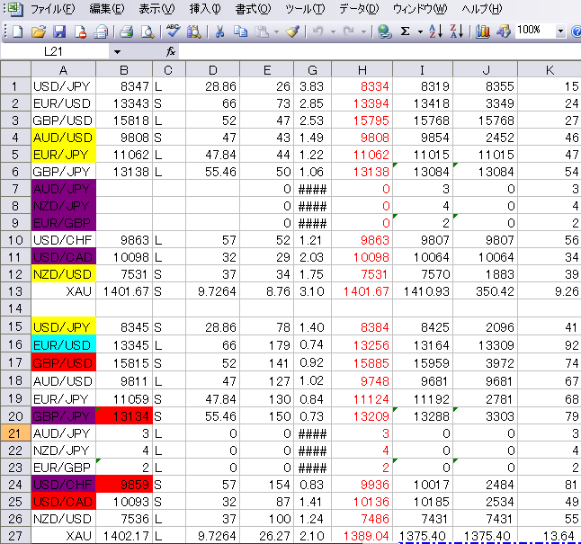 Excelのポジション管理シートもぐちゃぐちゃしてきています。