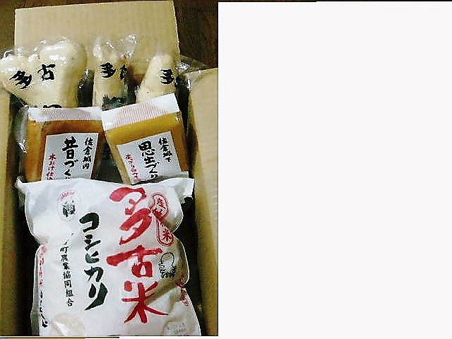 千葉産お米2キロ、やまいも、お味噌の詰め合わせです。