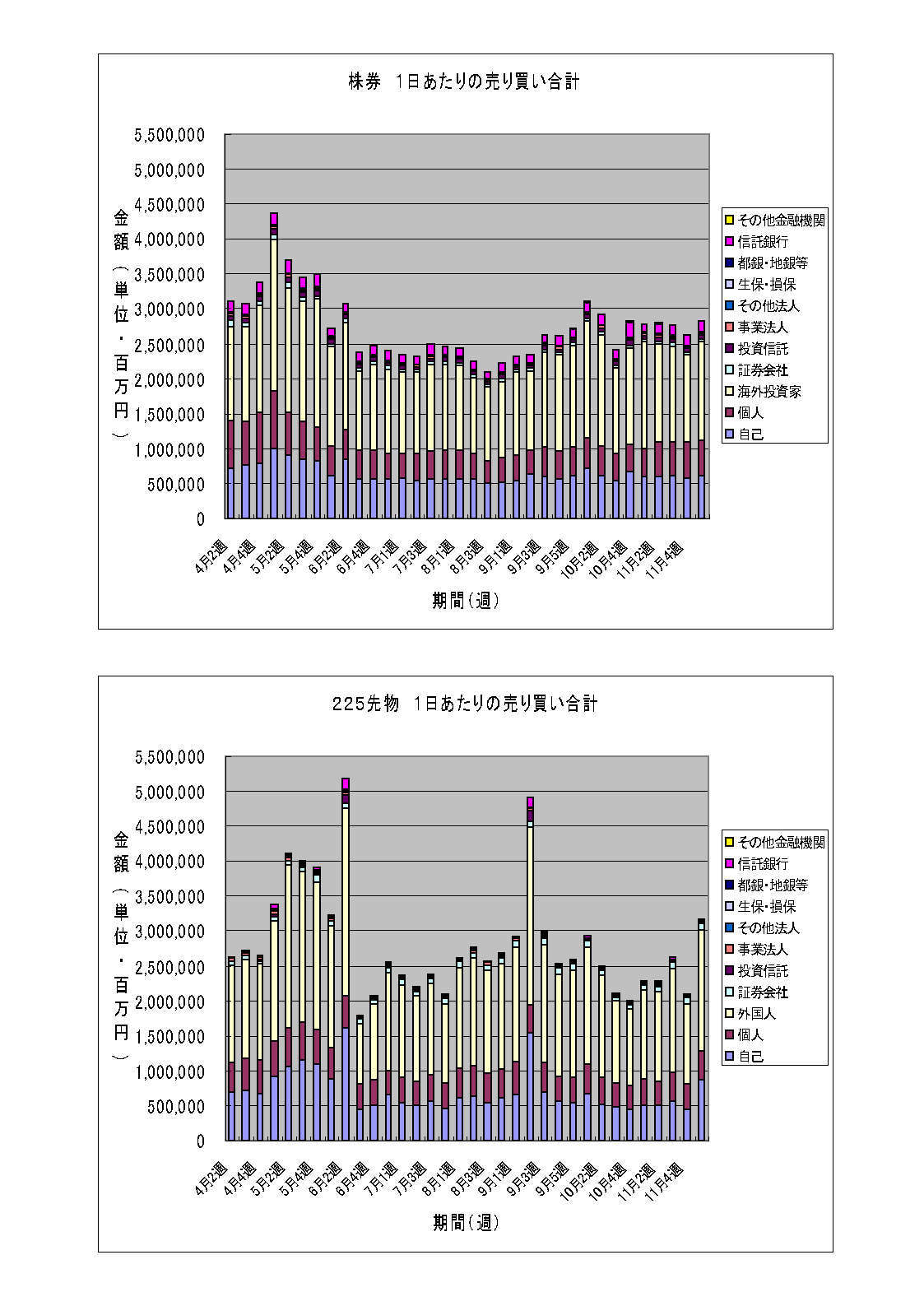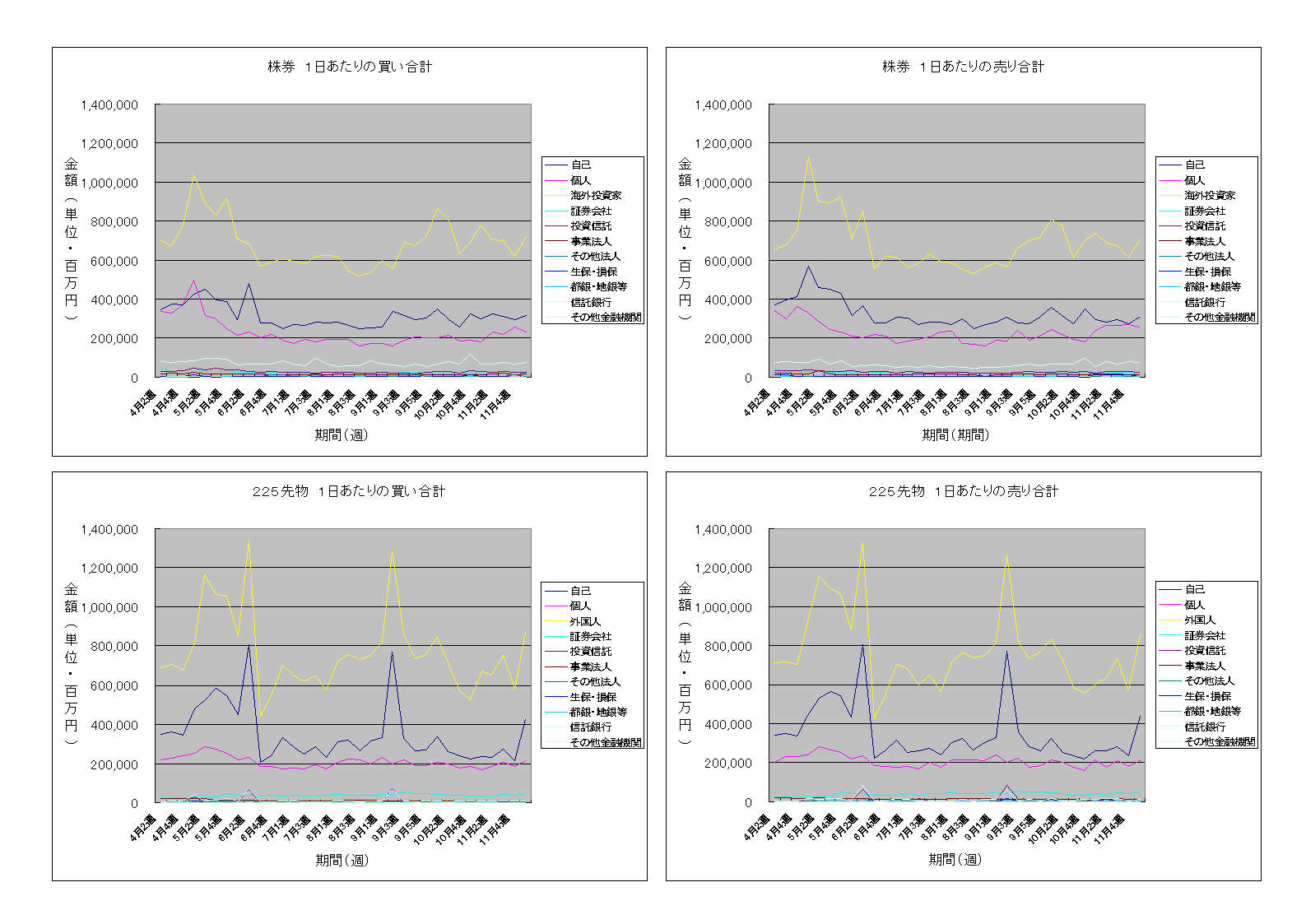 株券の売買金額が回復しました。ちょうど海外投資家が戻った分という感じです。
