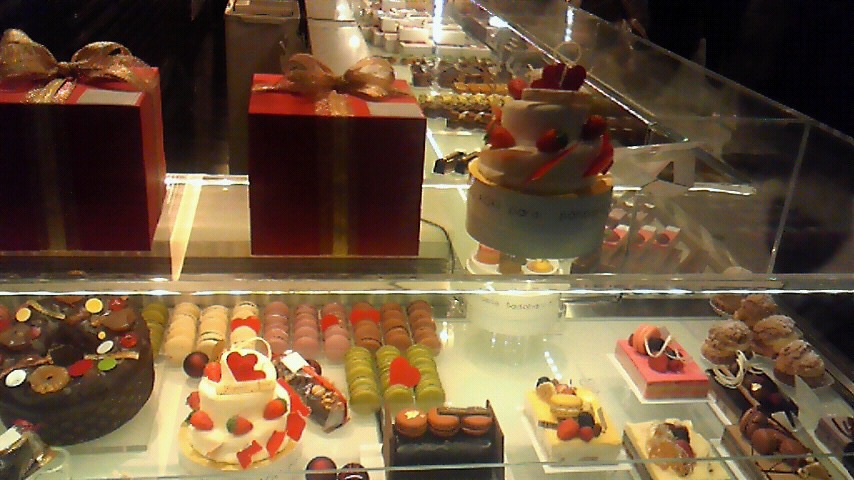>さて、写真は先日私の好きなチョコレート屋さんの前と、ケーキ屋さんの前でのクリスマスデコレーション。