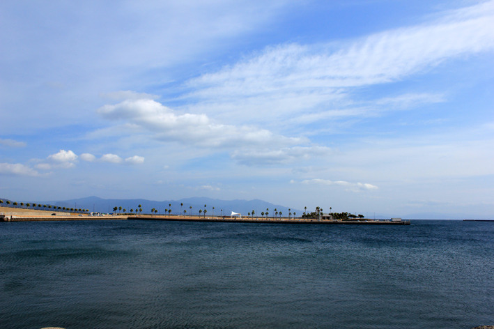 今日の写真は散歩に行く港公園を岸辺から撮りました。