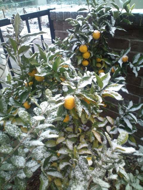 昨日日記に書いたゆずも写真のように雪化粧していました。