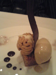 上のこげちゃのささっているものは、チョコかな?と思ったら、薄~く焼かれたクッキーでした。