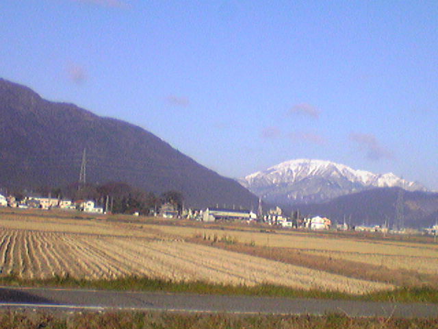 この水田と鈴鹿の山と伊吹山の違いが良く見えます。